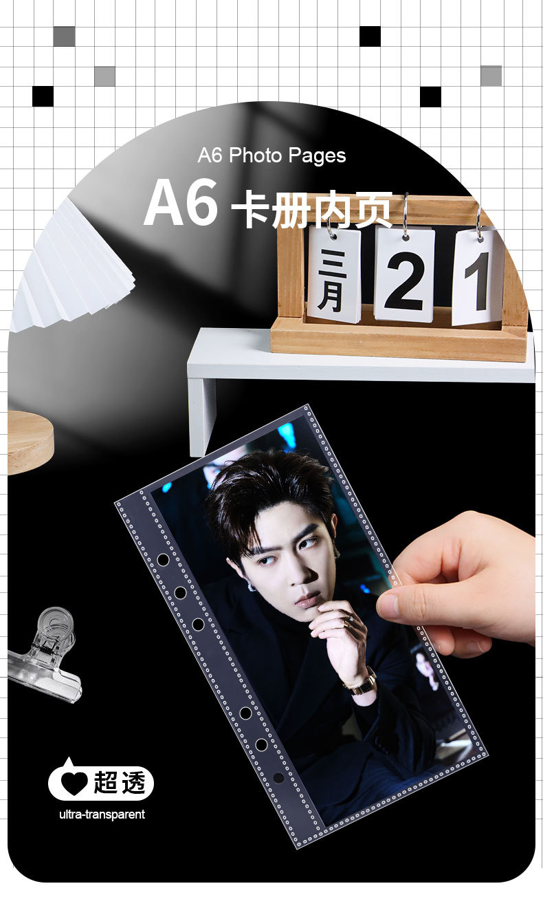 スター追跡フォトカードストレージアルバムポラロイドフォトアルバムインナーページ A6 透明ルーズリーフ 6 穴デザイン 3/4/ 5inch 写真に適しています