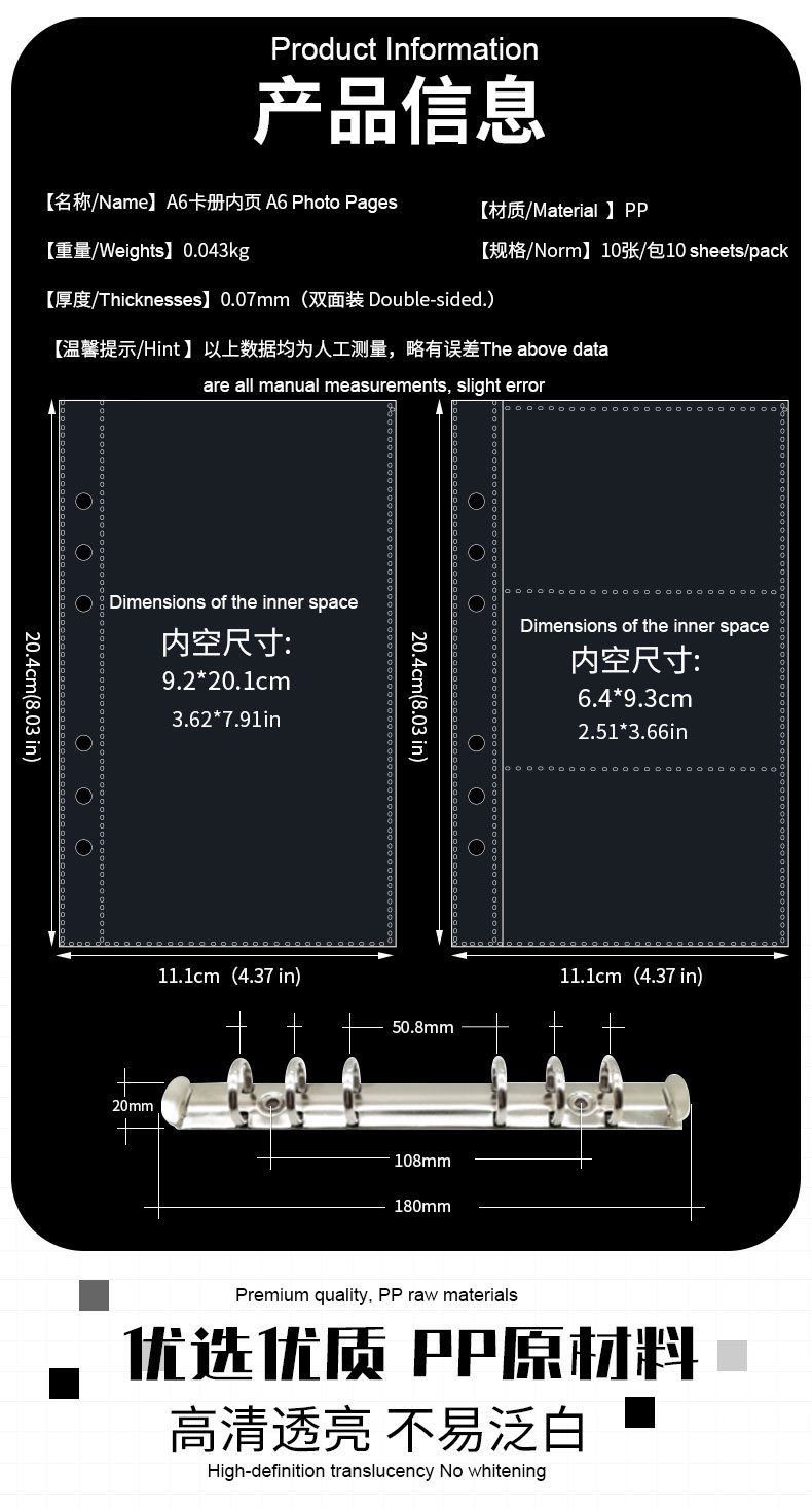 A5インナーページプラスチックシートppインナーページスターカードブックルーズリーフ2枚アルバムインナーページインサート保護フィルムカードページ