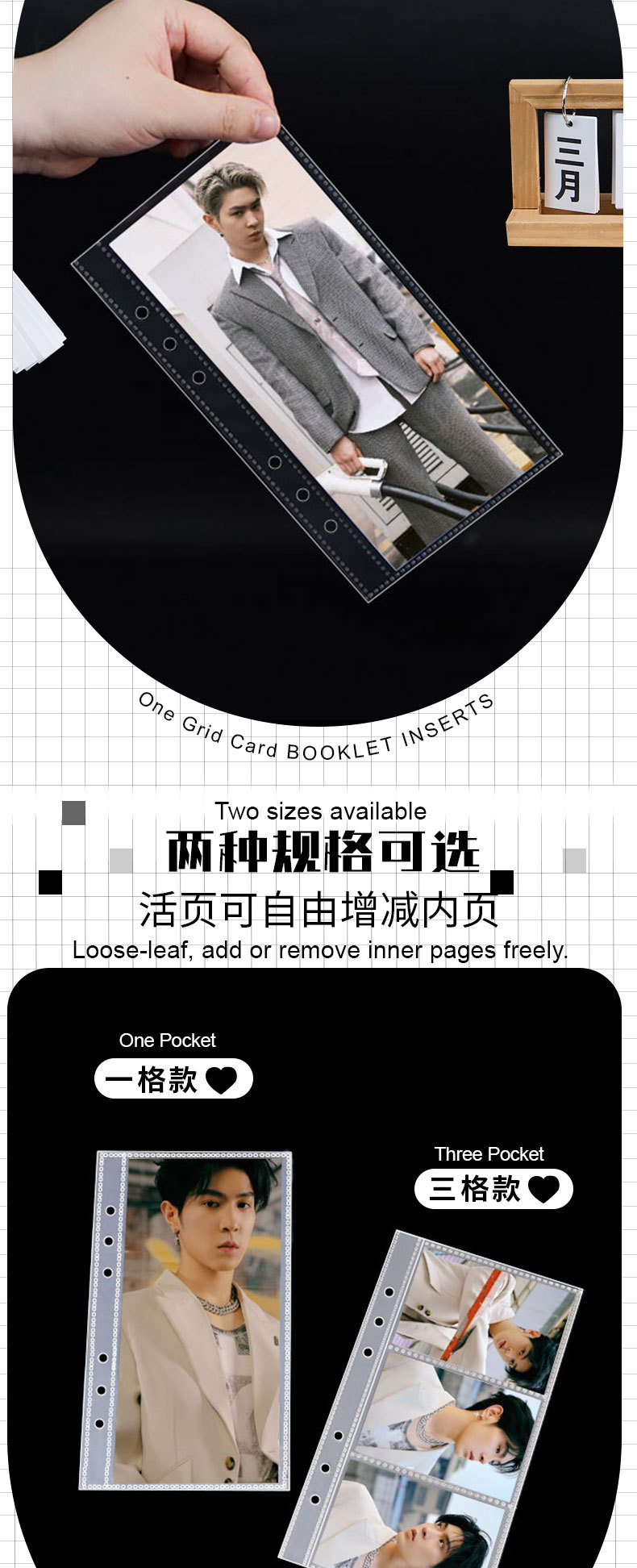 A6長型透明カードブック内ページ三宮格一格カードページ愛豆3インチ小カード収納ルーズアルバム芯