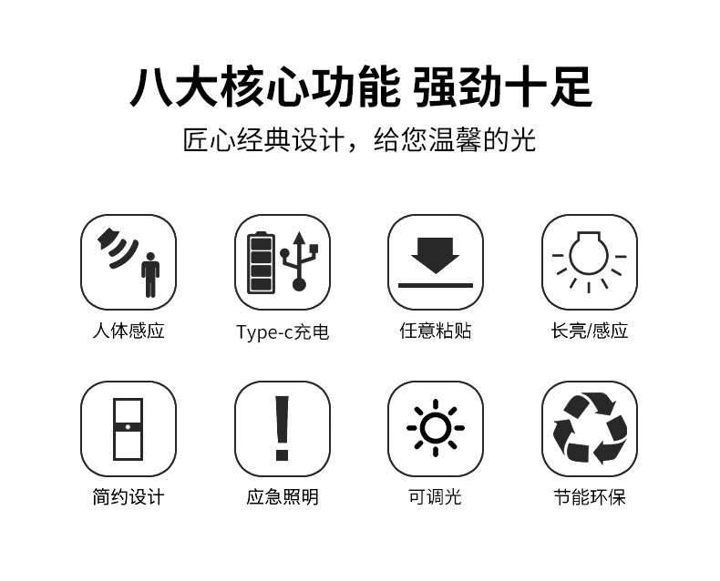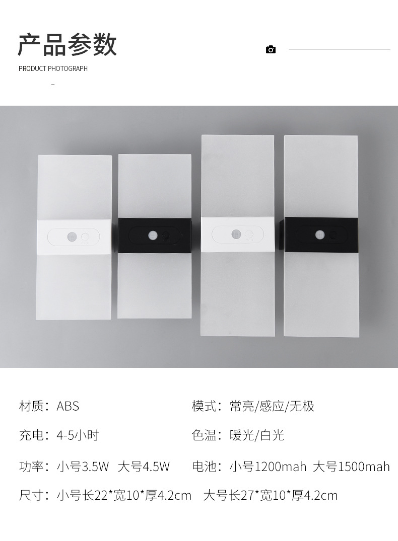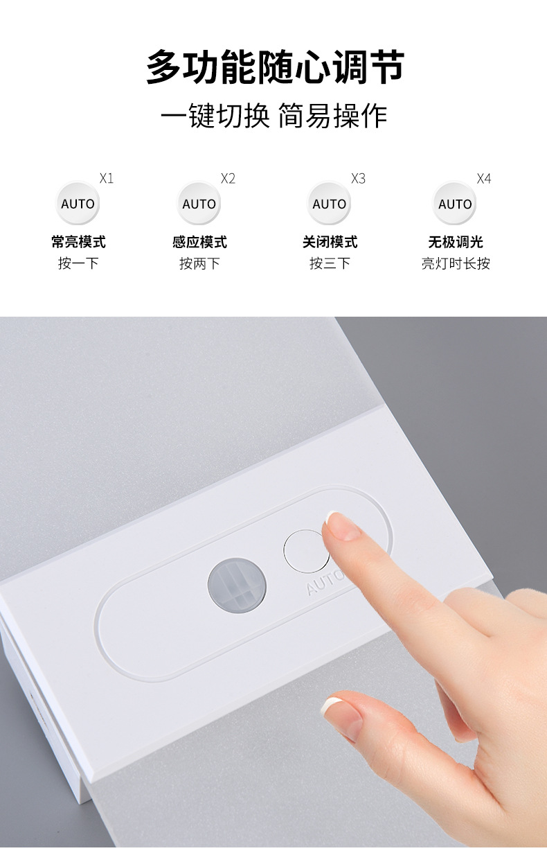 クロスボーダー充電式人体センサーランプベッドサイドランプナイトライト寝室睡眠配線不要玄関ドアエントランスセンサーランプ