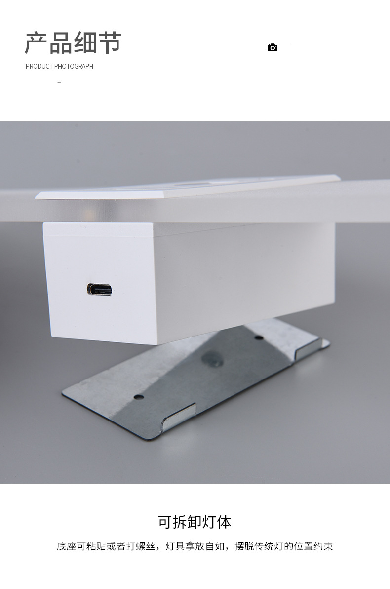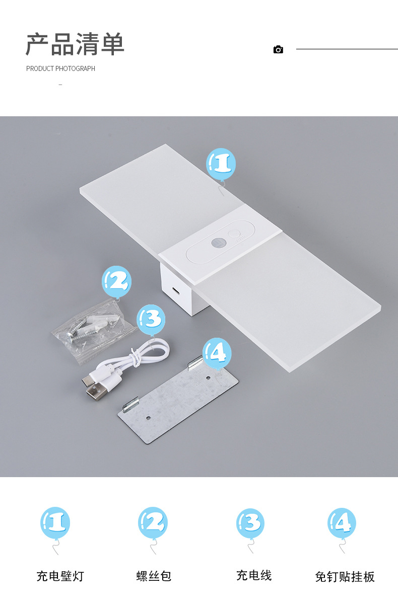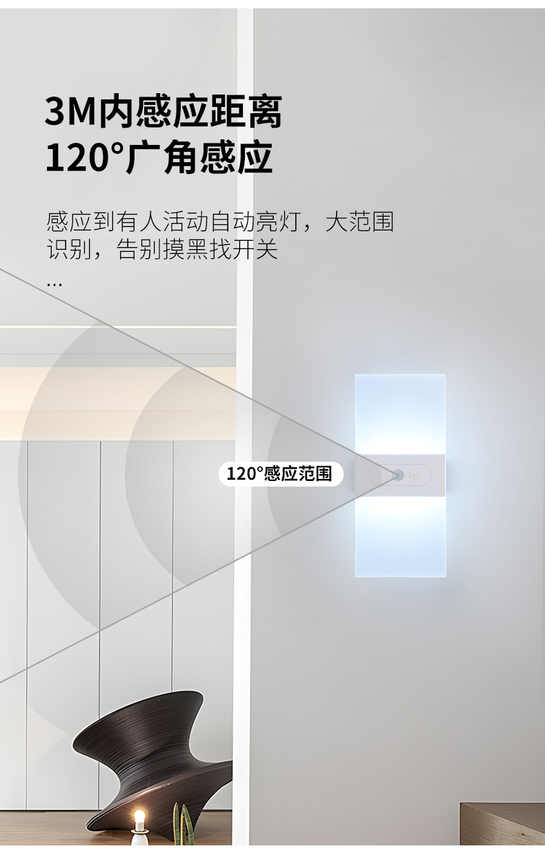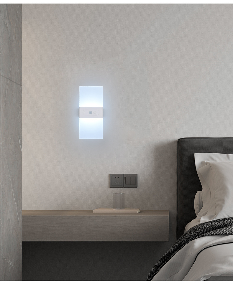 跨境新款led人体感应床头壁灯室内充电款免布线卧室客厅磁吸壁灯