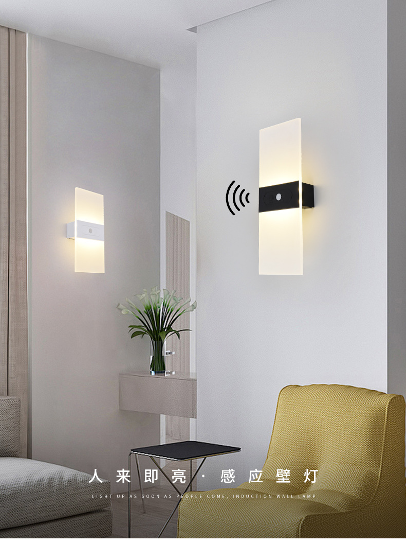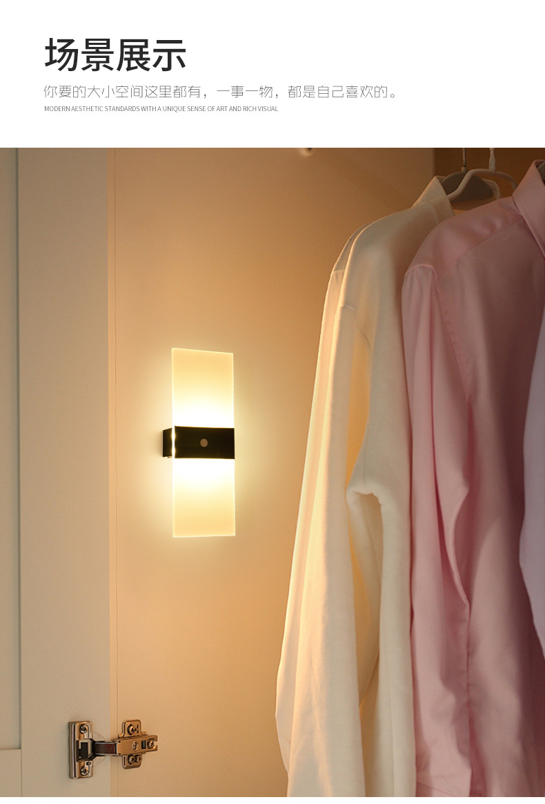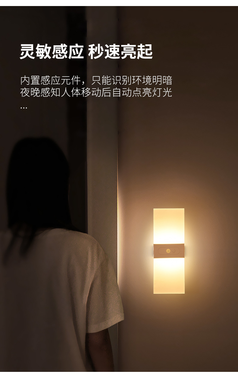 跨境爆品led人体感应氛围小夜灯充电款磁吸免布线亚克力装饰壁灯