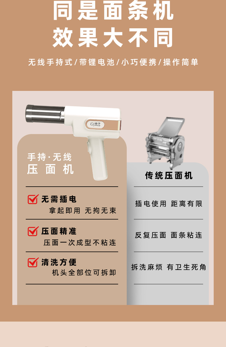 揚子の新型手持ち無線ヌードル機家庭用携帯型麺機充電多機能小型電動ヌードル