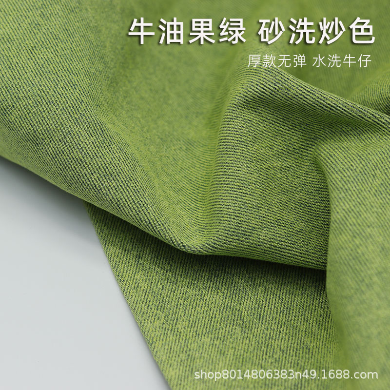牛油果緑砂洗い炒め色純綿水洗いデニム生地高級服バッグ靴