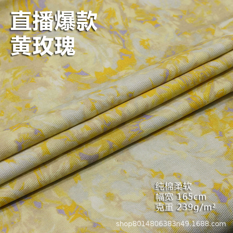 生放送で爆発した黄色のバラの花のツイルのデニムの布地の服装の生地の綿のズボンのスカート