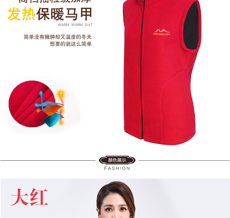 中老年秋冬摇粒绒马甲女立领宽松外穿马夹抓绒坎肩保暖背心妈妈装