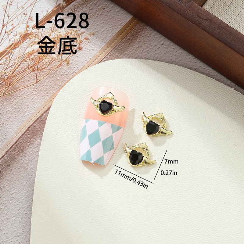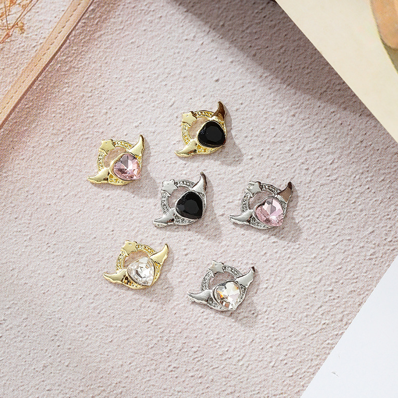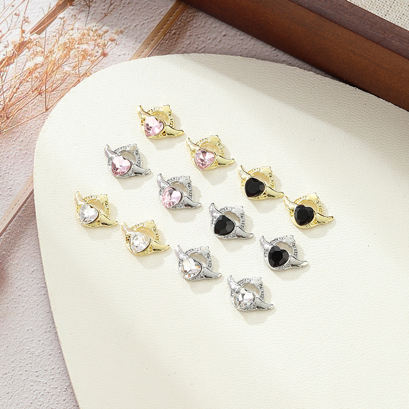 国境を越えた人気のダーククローハートダイヤモンドクロス合金ネイルアートジュエリーパンクネイルダイヤモンドジュエリーネイルアート卸売