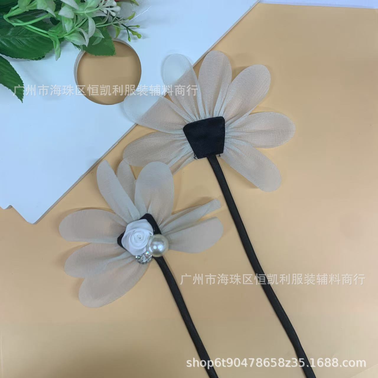欧根紗の底の多弁の花のスターの同服の装飾の材料のレースの真珠の花の皿はひもの頭飾りを包みます。