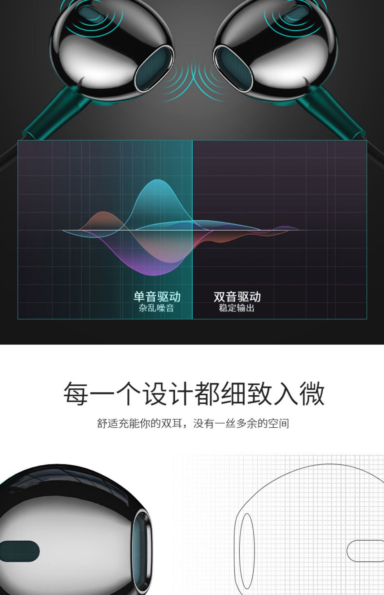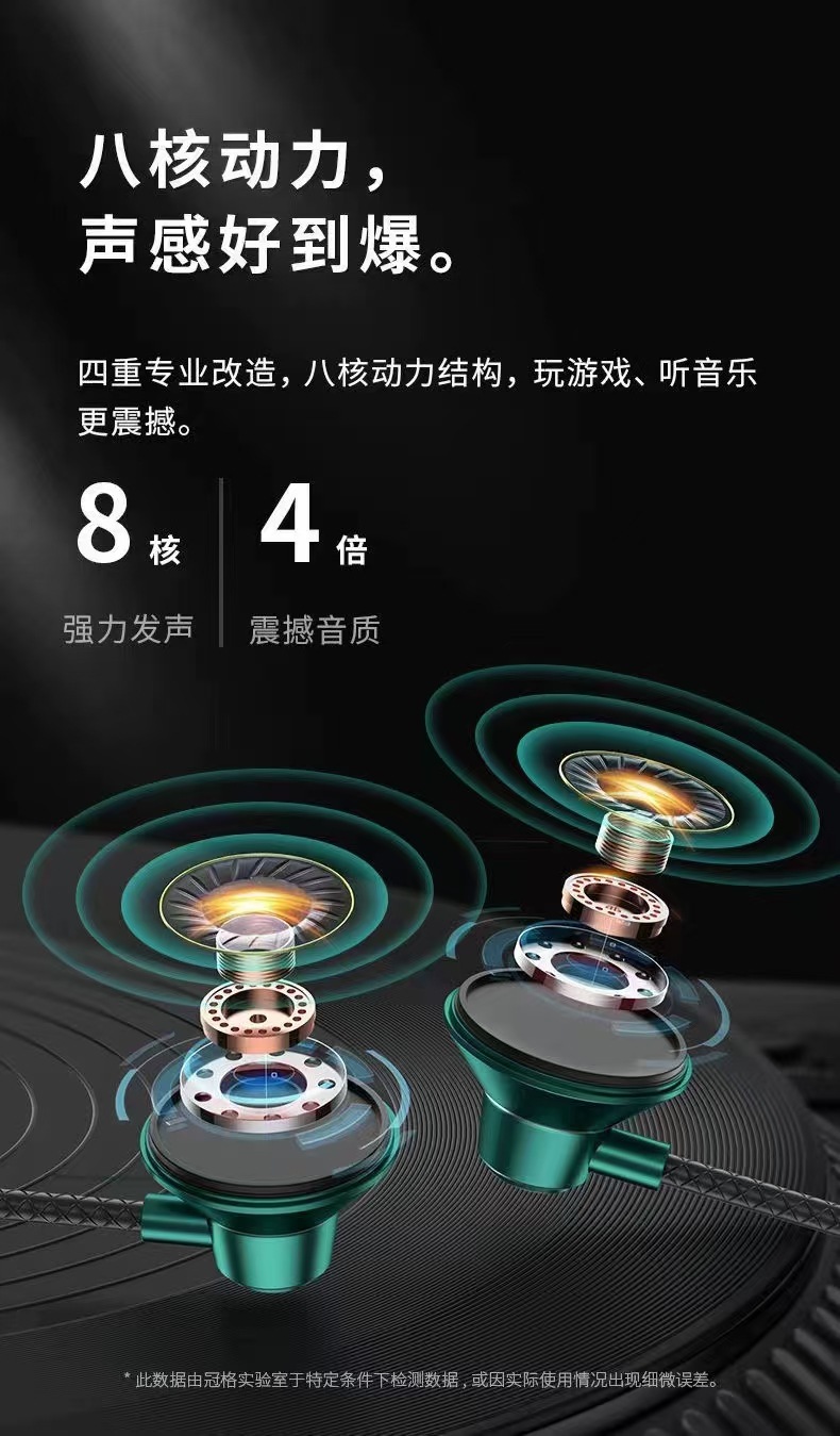 新型爆型有線入耳式イヤホン双動輪双ラッパスマートフォンのイヤホン線制御調律