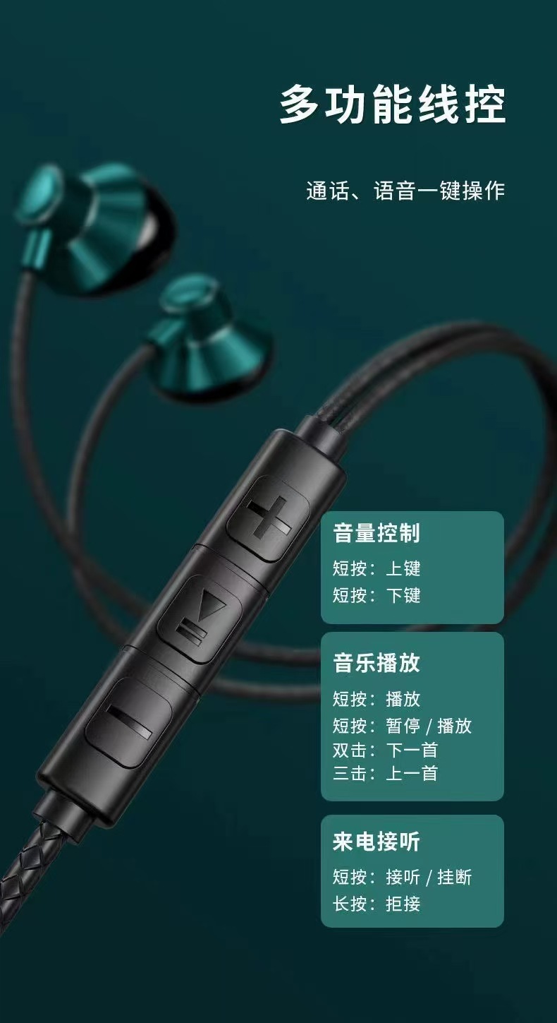 金属磁気吸引有線tcイヤホン入耳式重低音携帯電話線制御電気競争ゲームデジタルチップイヤホン