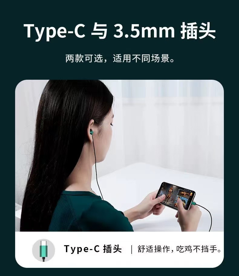 新型5世代有線イヤホンtype-cアンドロイド携帯電話共通3.5イヤホン入耳式重低音線制御帯麦