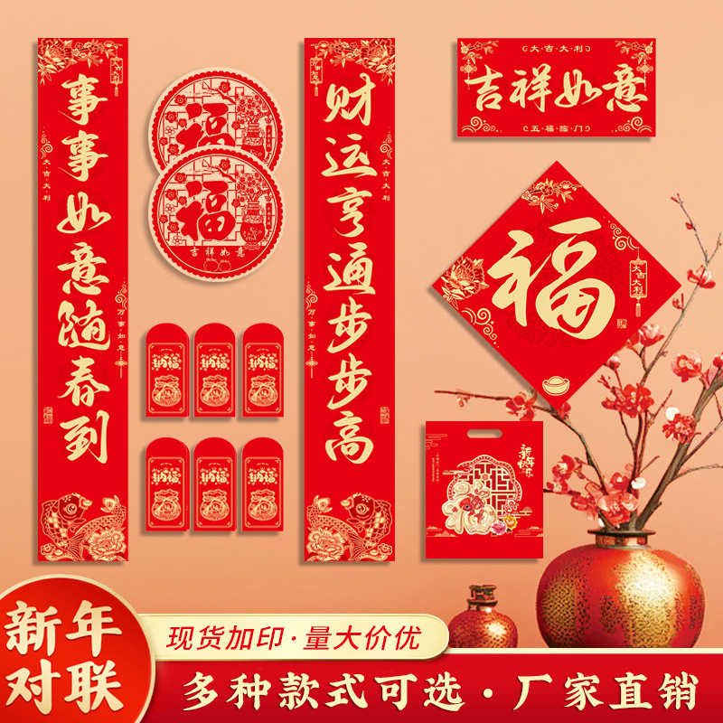 2025年旧正月対聯大ギフトバッグ礼箱入りバケツ入り箔押し新年春聯紅包福字窓花門貼り