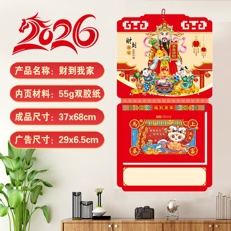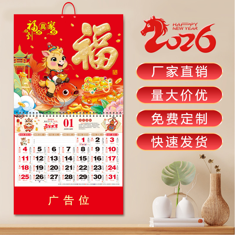 馬年壁掛けカレンダー新 2026 金箔フォーチュンタグカスタムカレンダー壁掛け月間カレンダースポットプラスロゴ