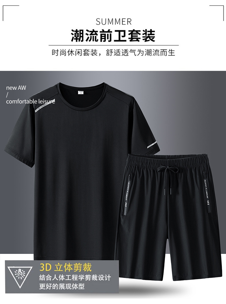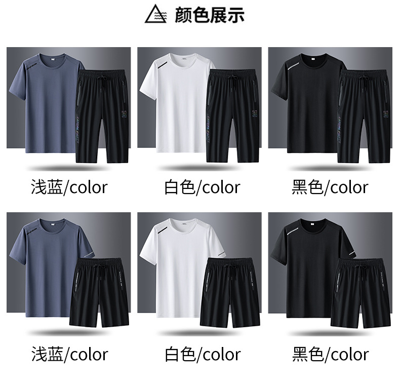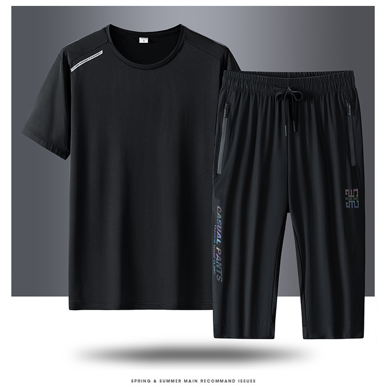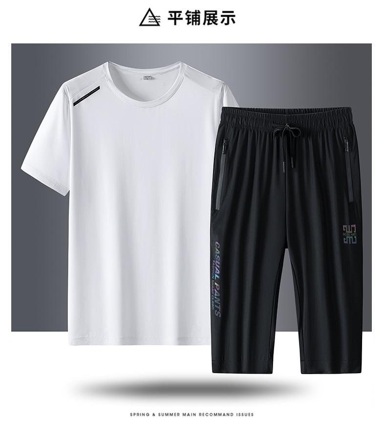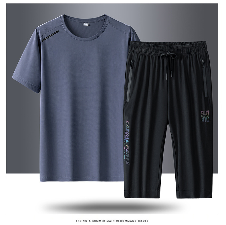 半袖氷糸七分ズボン2枚セット2024夏氷糸五分ズボン速乾氷爽レジャースポーツtシャツ