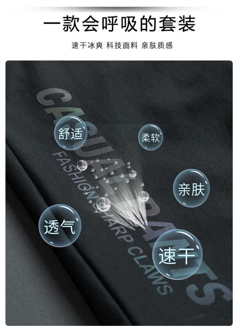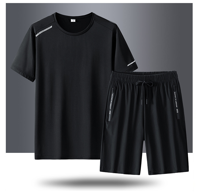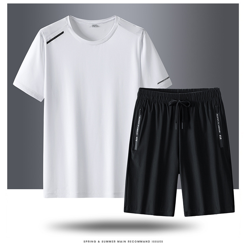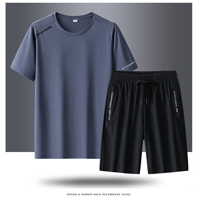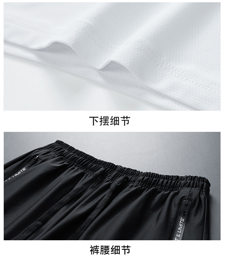 半袖氷糸七分ズボン2枚セット2024夏氷糸五分ズボン速乾氷爽レジャースポーツtシャツ