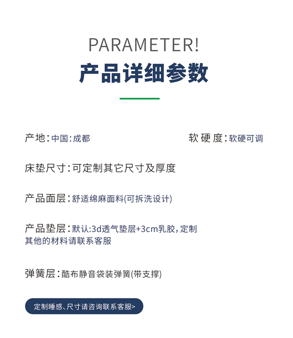 カラー コットンとリネンの生地 (クールな布袋入りサイレントスプリング + 3D パッド + 3cm ラテックス)