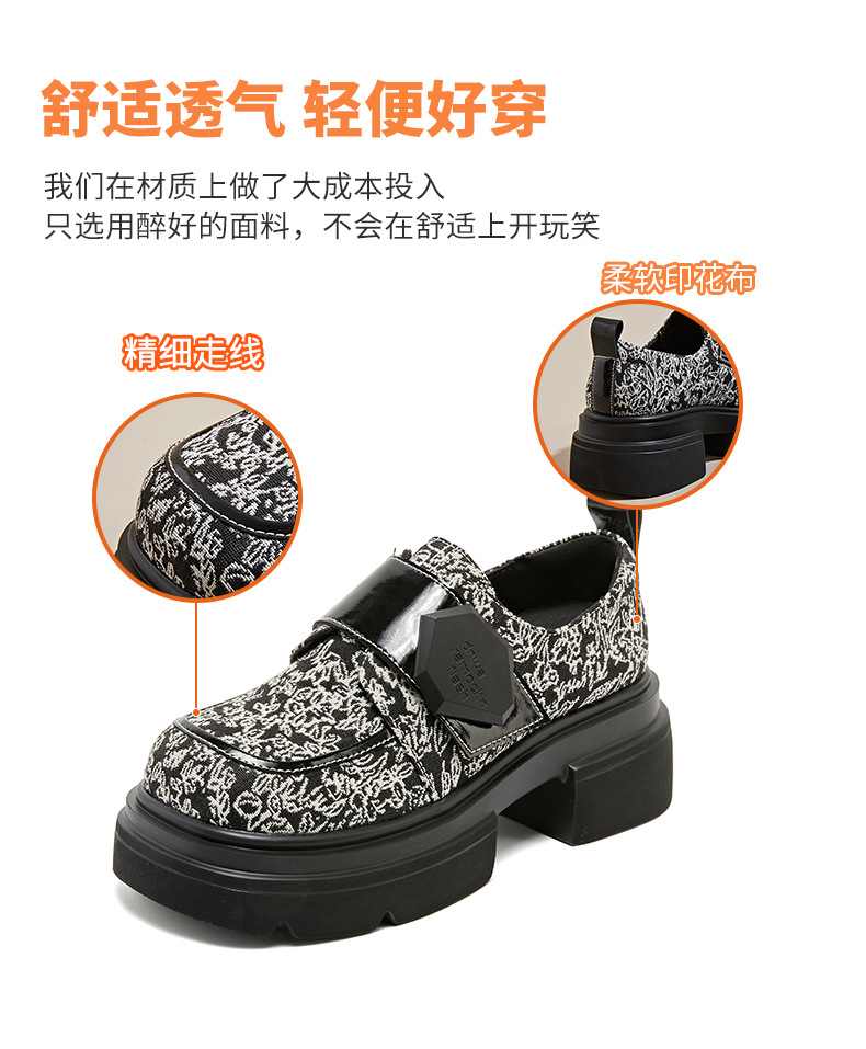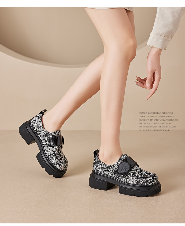 3222小さいサイズのカジュアルな靴の女性の韓国版の厚い底の中で高くなる楽福の靴の女性のマジックは花の刺繍の女性の靴を貼ります。