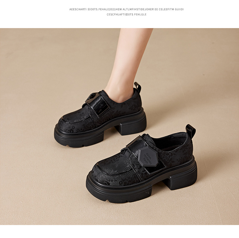 小さいサイズの厚底小さな革靴女性のための春 2025 新しい英国スタイルのローファー女性のためのプラットフォーム増加カジュアルシューズ女性のための