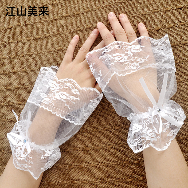 夏ショートレース手袋メッシュレトロエレガントブライダルフォト撮影パフォーマンスドレスパフォーマンスブライダルスタイル
