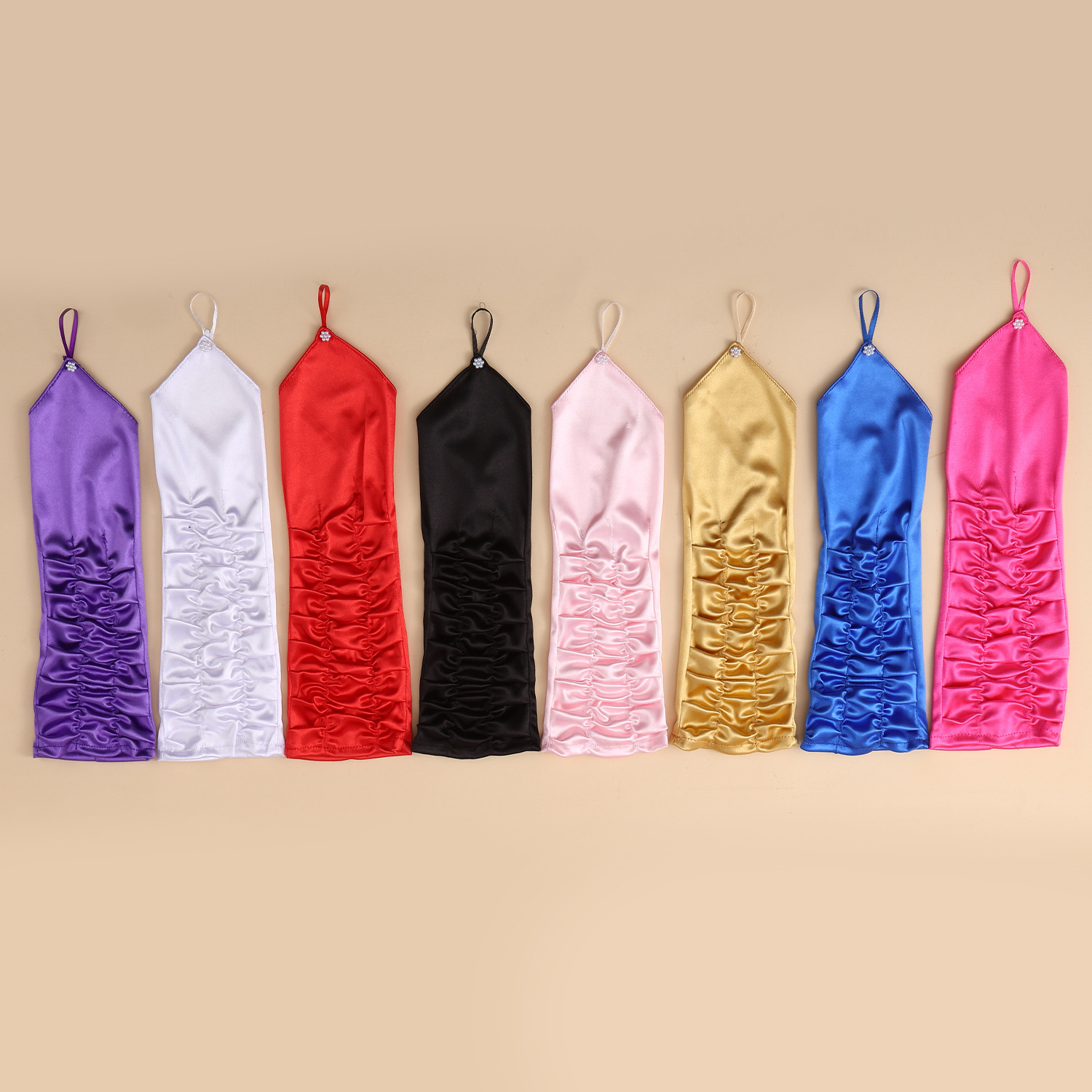 女式歌剧派对缎面弹性肘长手套勾指褶皱色丁亮面手套