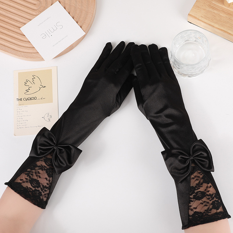 メーカー直販子供用サテン蝶結び手袋子供公演パーティードレスアクセサリー日焼け止めロング女の子