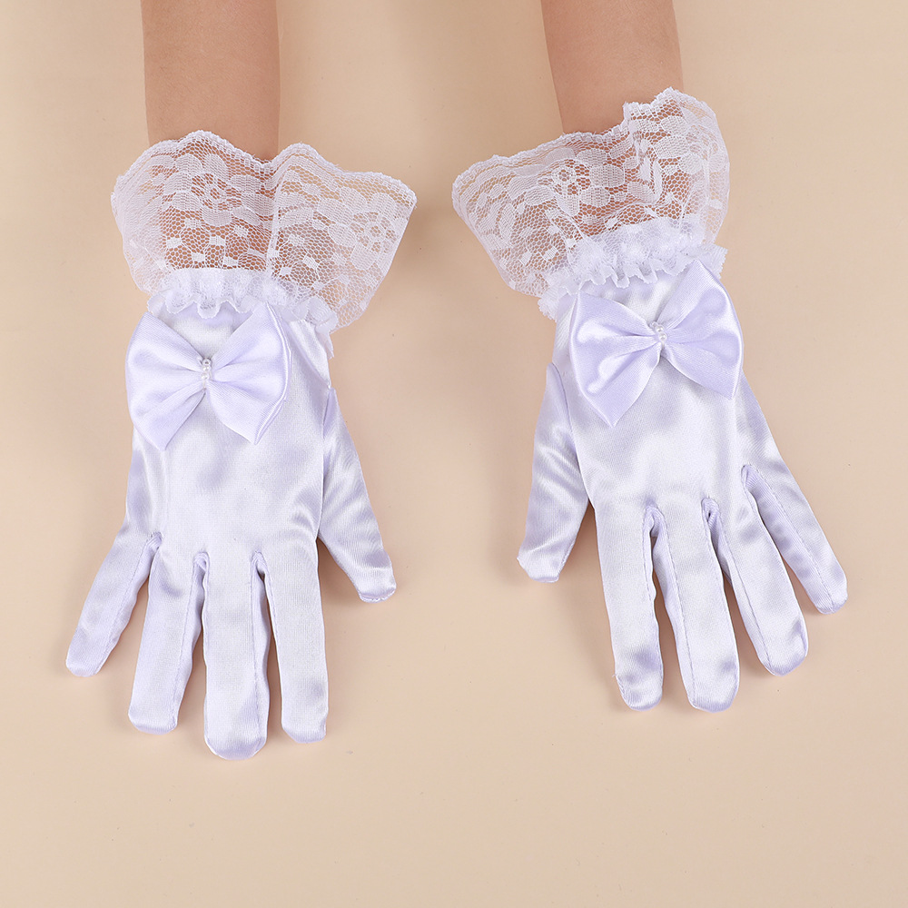 子供用蝶結び手袋花嫁結婚式花童レース色丁サテン学生ショードレス手袋白