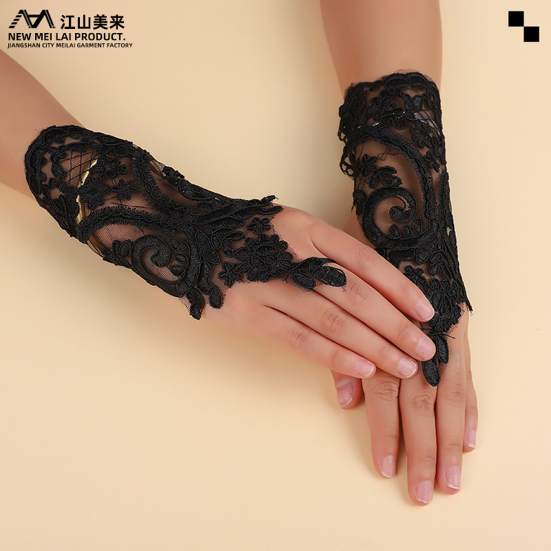 新商品クロスボーダーロングメッシュ手袋ウエディングドレス欧米ハロウィーン結婚式アクセサリー黒いレース袖カバー女性