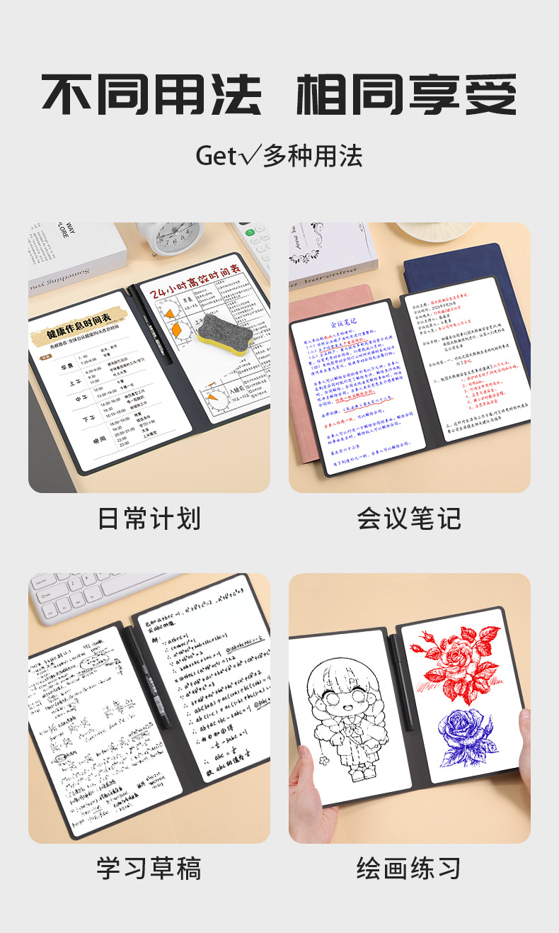 跨境可擦白板笔记本a5移动记录擦写草稿本记事小白板写字板可消除