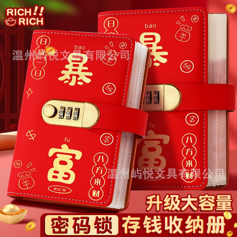 現物ネット赤爆金現金預金本収納帳暗号ロック大容量暴富預金財布資産管理帳