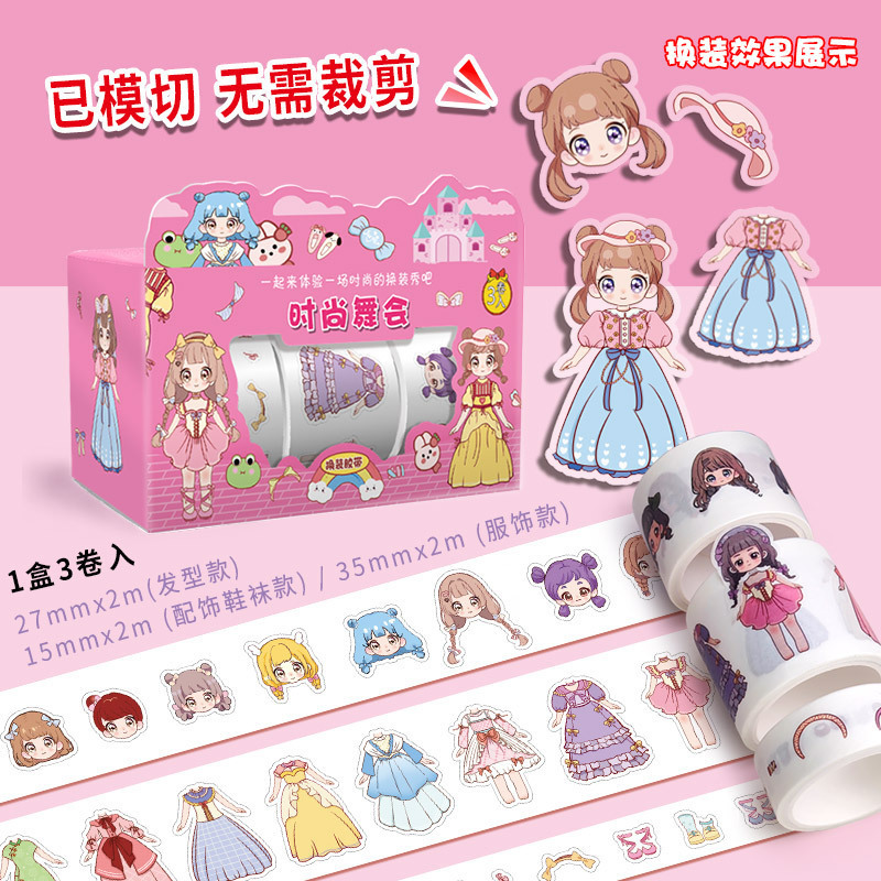美しいお姫様着せ替えシール古風女の子漫画テープかわいい子供手帳人物服装飾