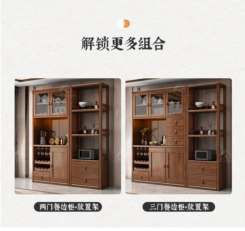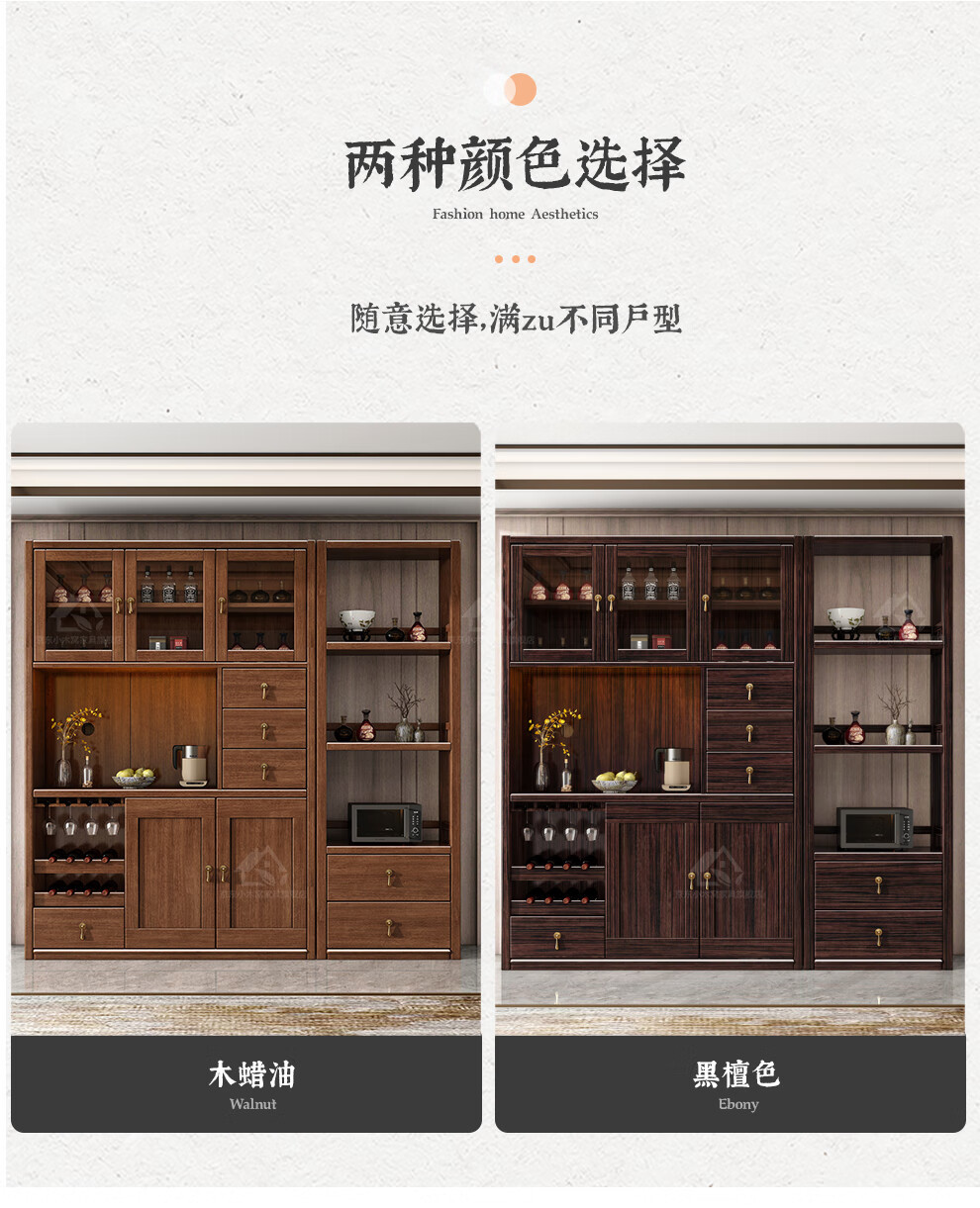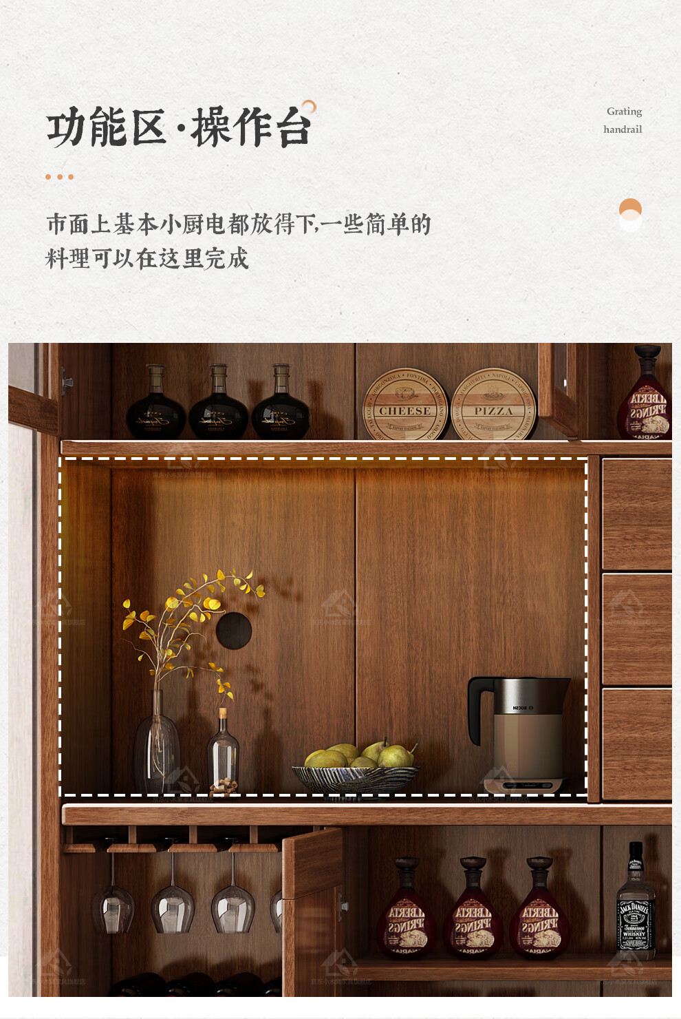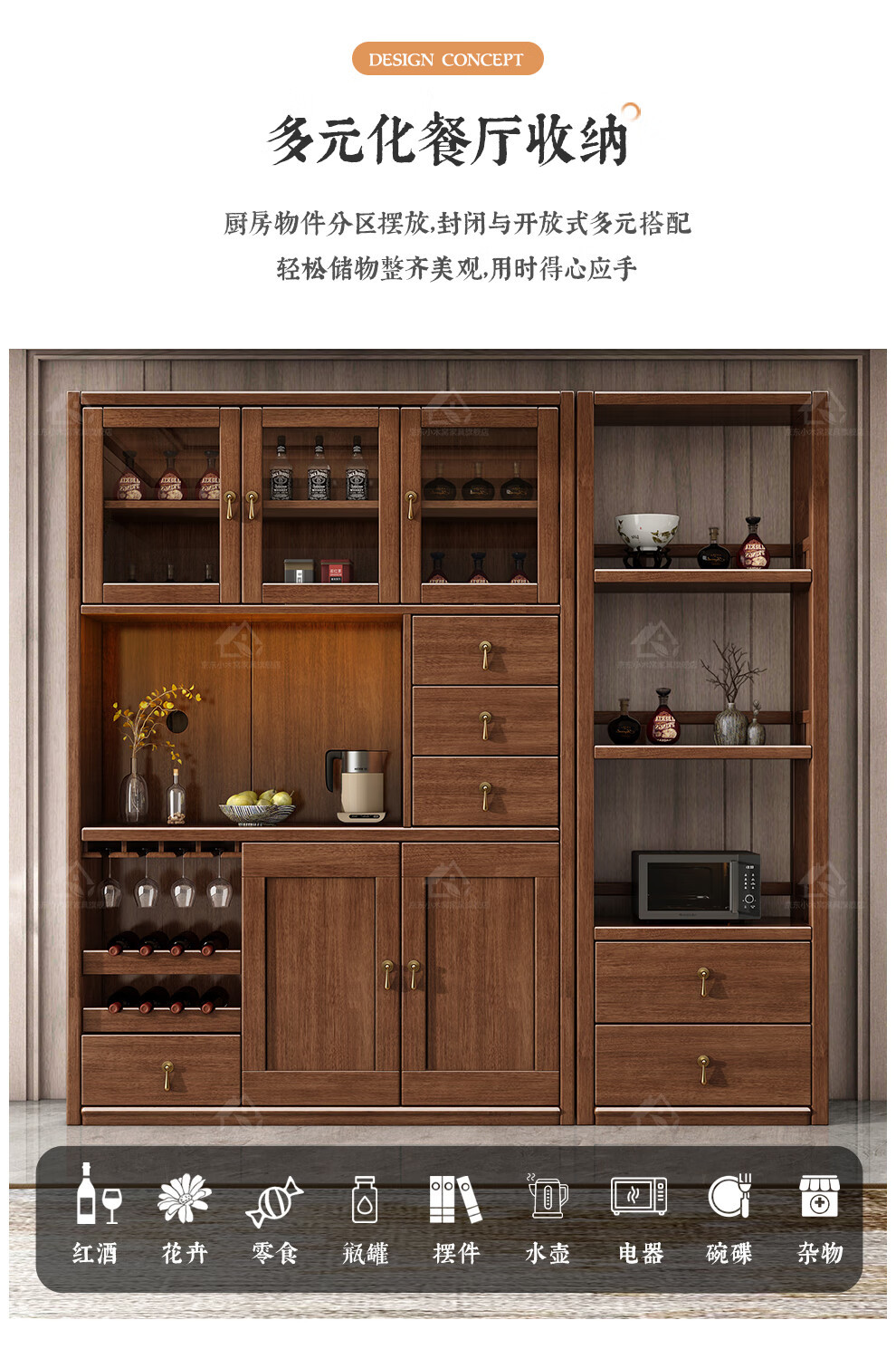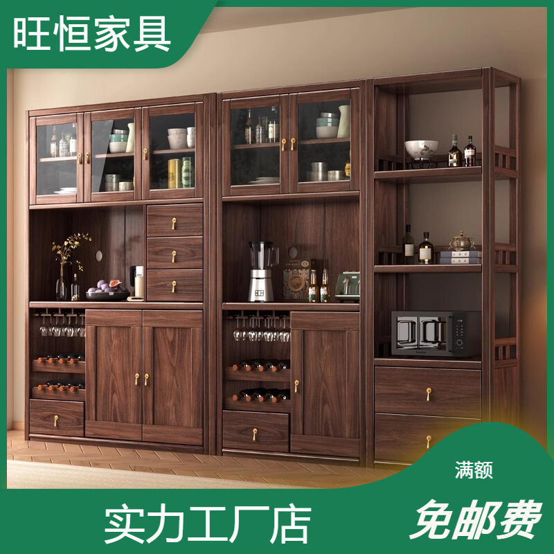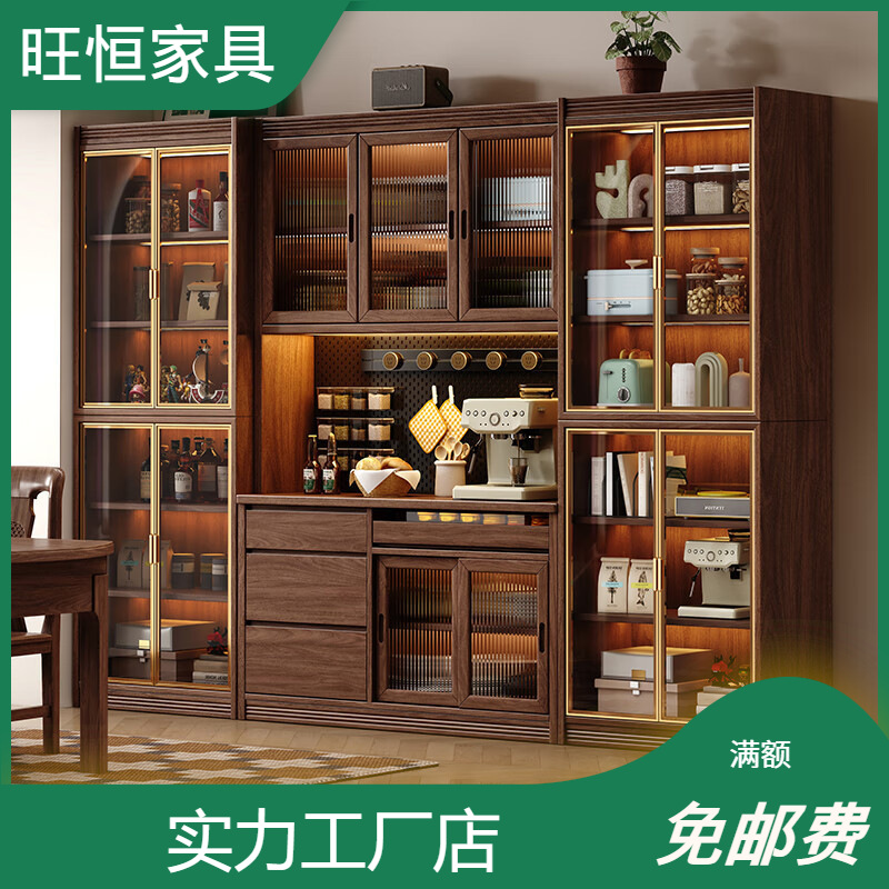 中古风实木餐边柜黑胡桃木靠墙一体厨房橱柜客厅餐厅储物收纳酒柜