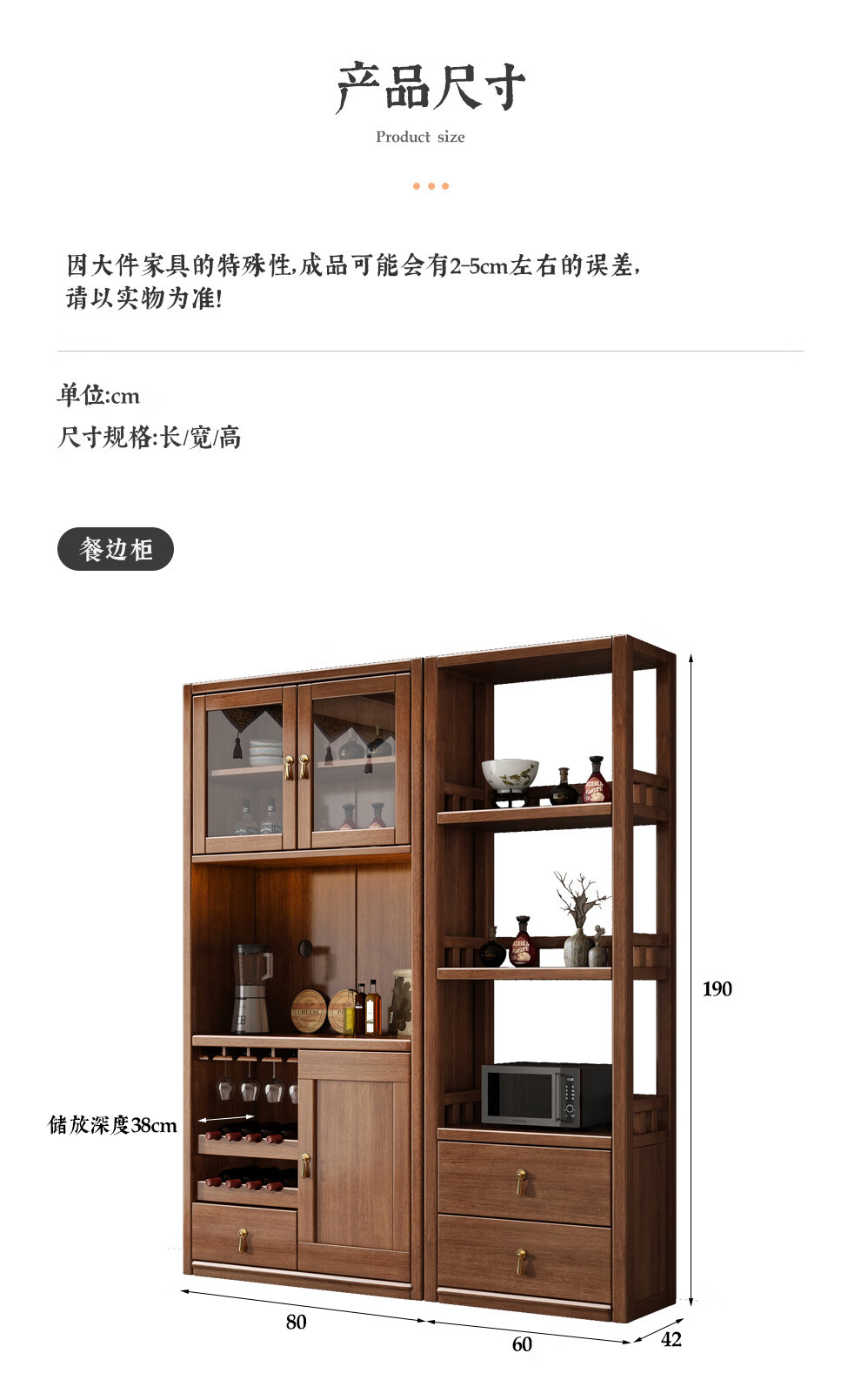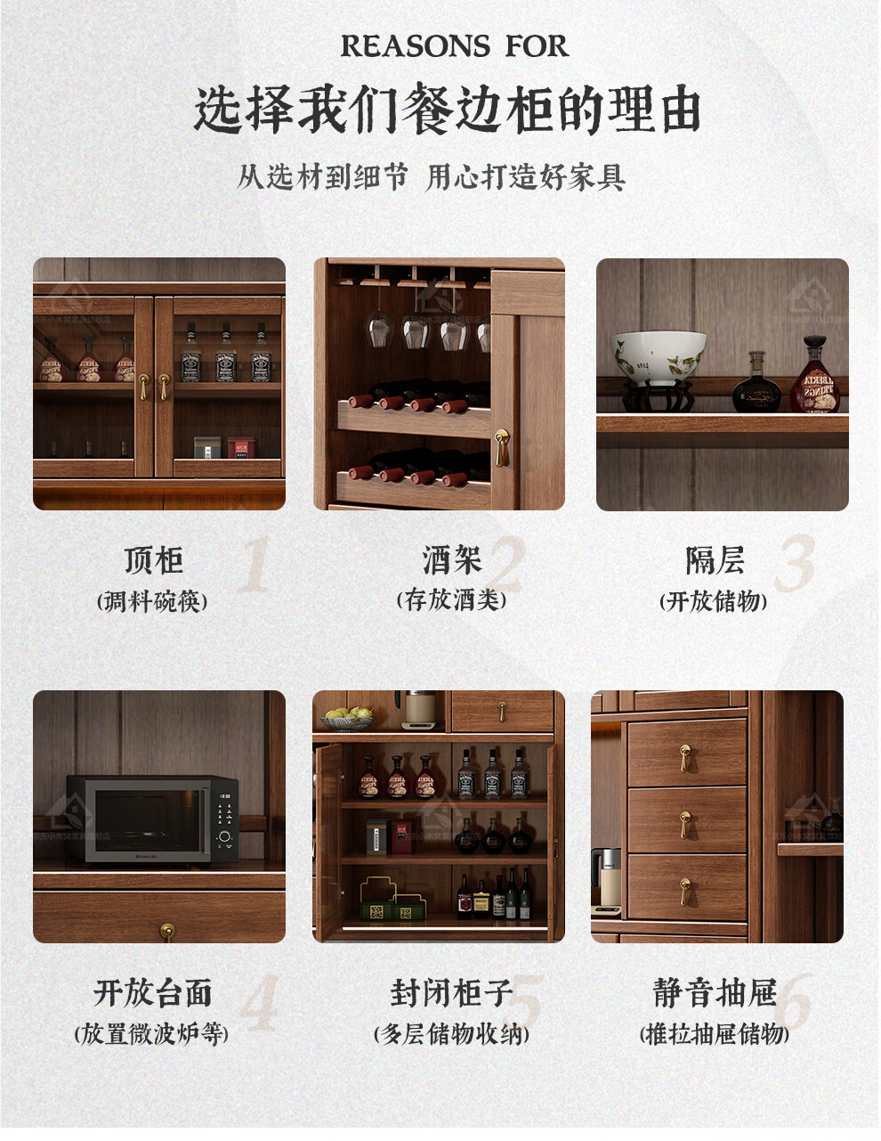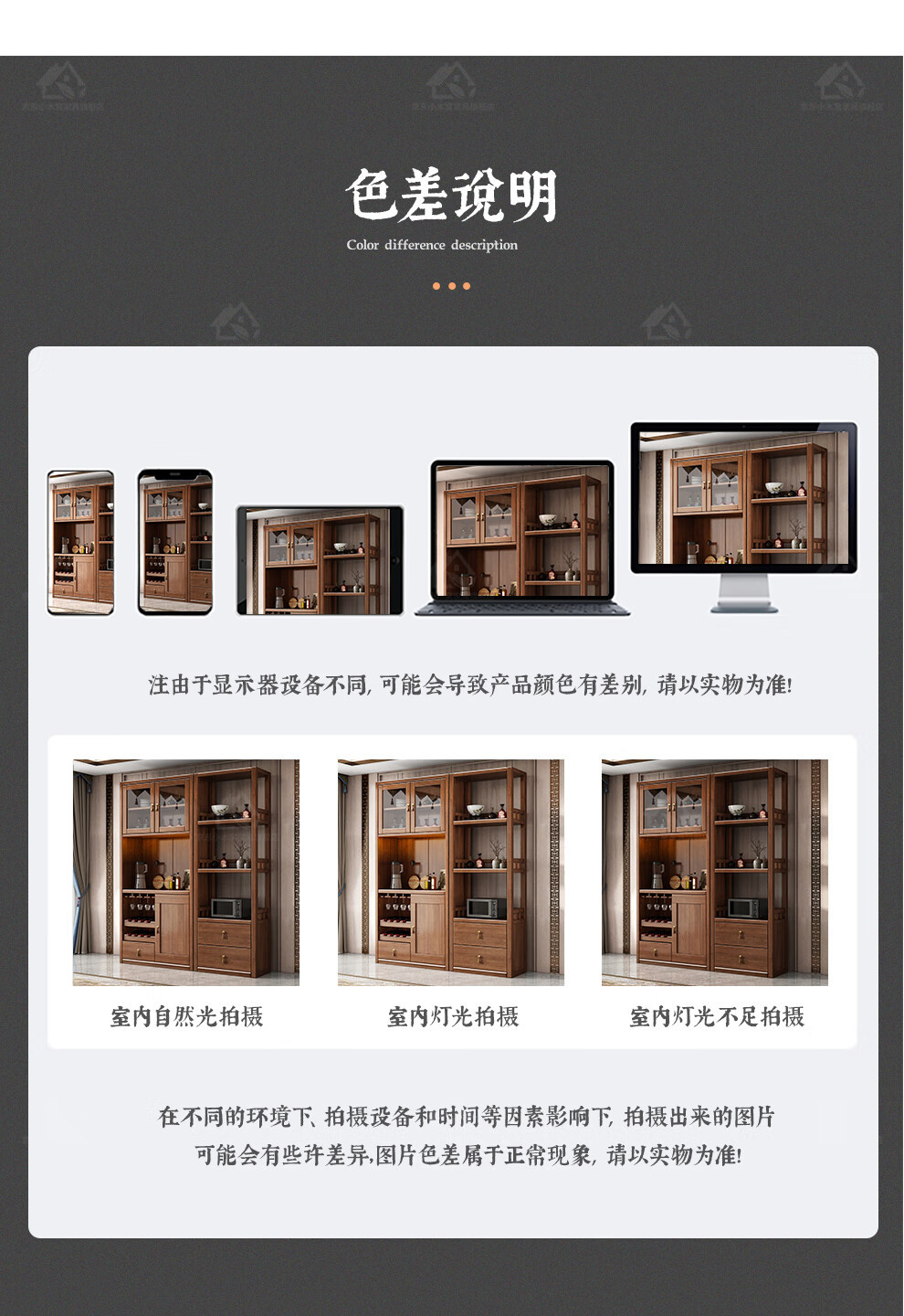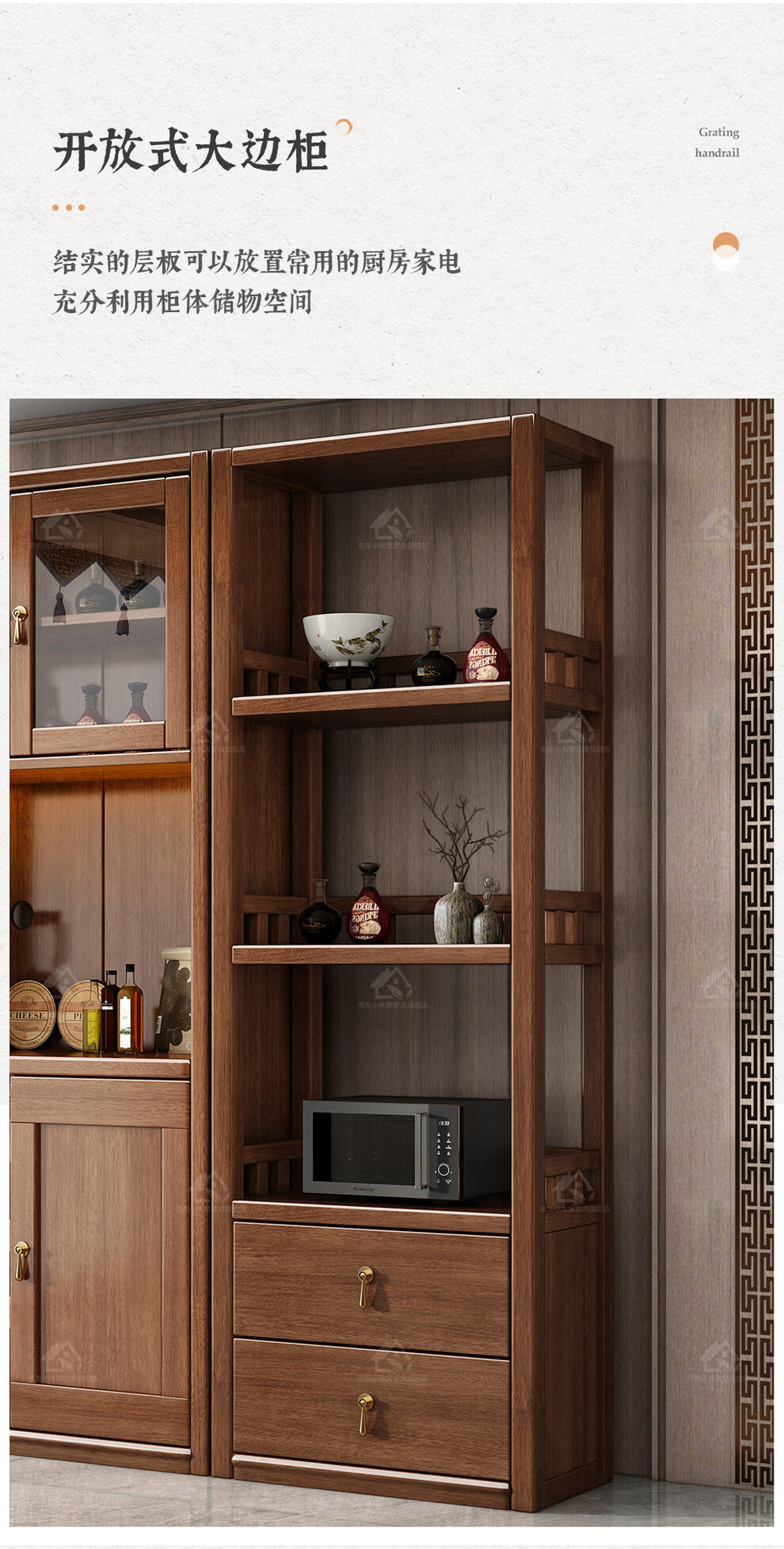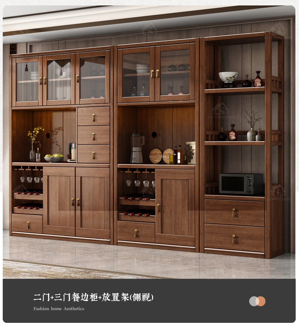中古风实木餐边柜黑胡桃木靠墙一体厨房橱柜客厅餐厅储物收纳酒柜