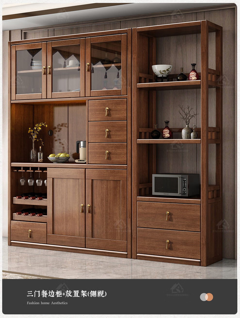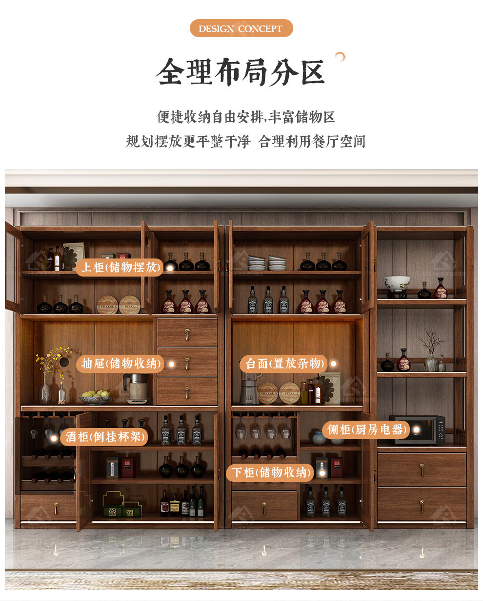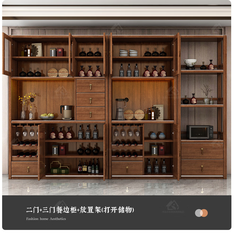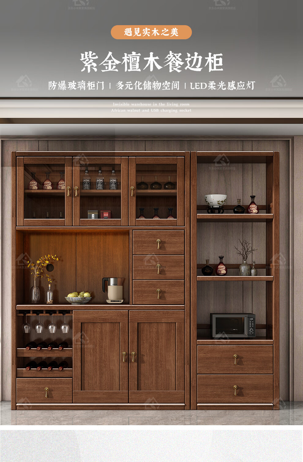 实木餐边柜靠墙一体高柜家用茶水柜轻奢高档酒柜客厅收纳储物柜子