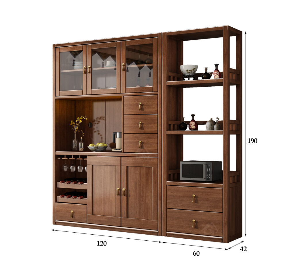 全オーク材実木食辺盤客間家庭用胡桃木ガラス食器棚戸棚壁一体高戸棚