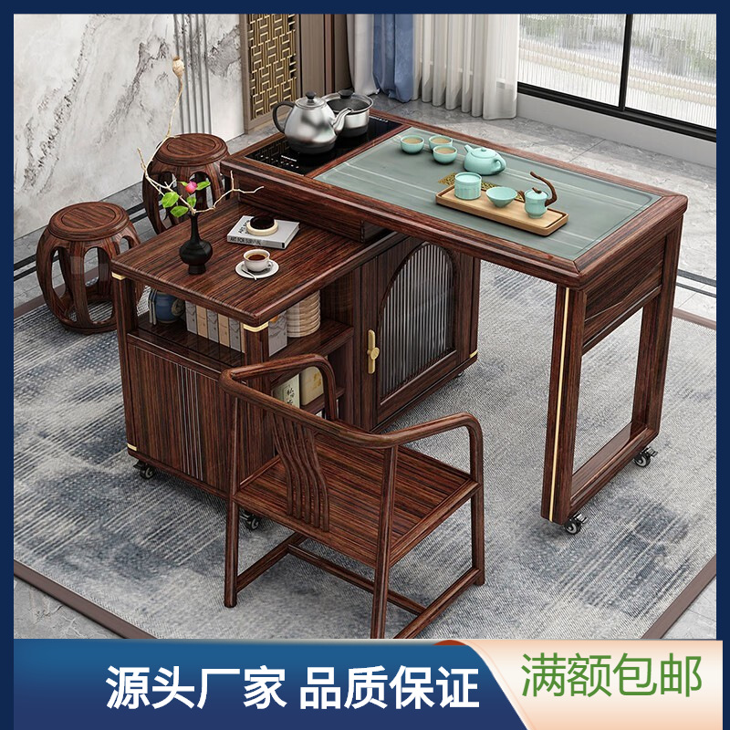 新中国式実木茶テーブルと椅子の組み合わせ回転移動茶台事務室の工夫茶の家庭用ベランダは茶台を入れます。