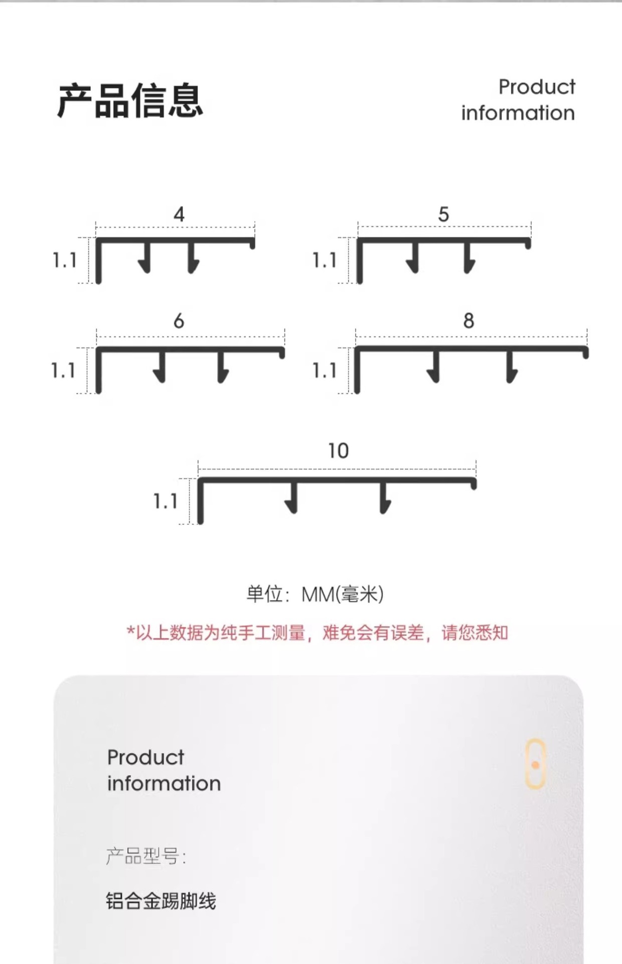 铝合金黄橡木踢脚线卡扣极窄木纹地脚线6cm金属加厚家用贴脚线条