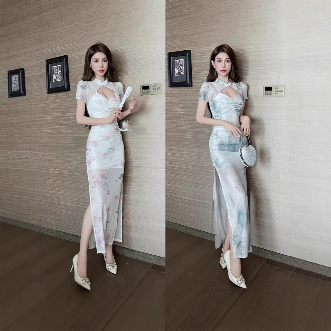2025年夏改良版旗袍風、ウエストシェイプで着痩せ効果のあるナイトクラブ向けセクシーな継母風ドレス、ピュアでセクシーなホットガール向けヒップハグドレスワンピース