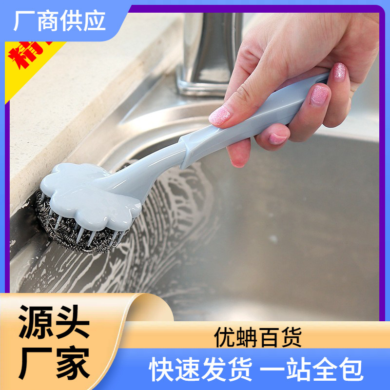 長柄スチールウールブラシ キッチン掃除用品 食器洗い鍋ブラシ ステンレス製 汚れ落とし クリエイティブな掃除ツール