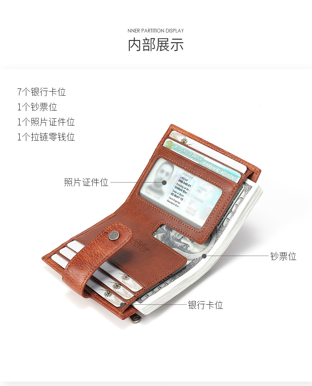 钱包盒装发货标准:单品拷贝纸+环保袋+OPP透明袋+泡沫袋+卡片+礼盒+OPP透明袋贴封