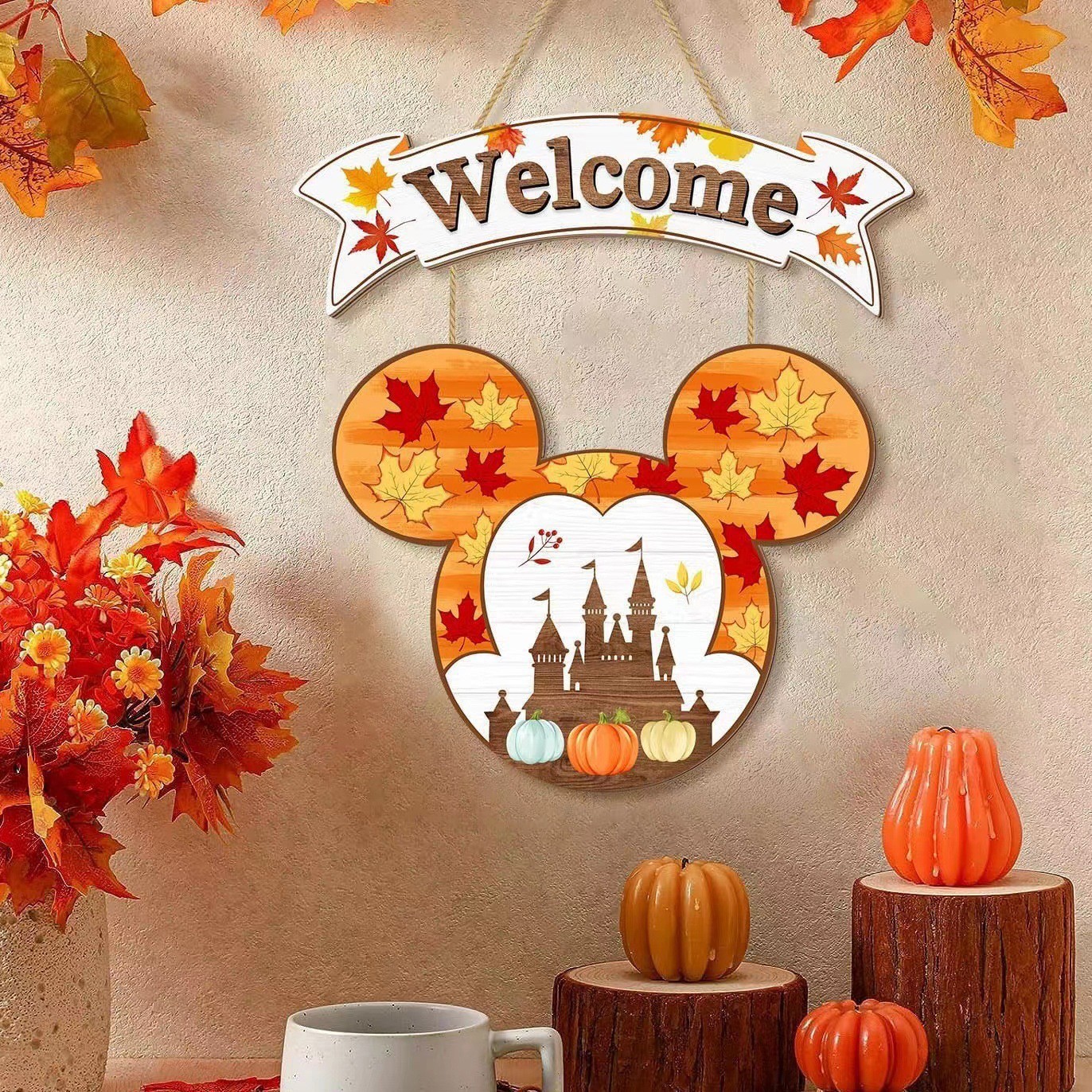 国境を越えた実木ミッキーマウスの壁面に看板を掛けた雰囲気が木札の家庭用ドアに木のストラップを歓迎するハロウィーン