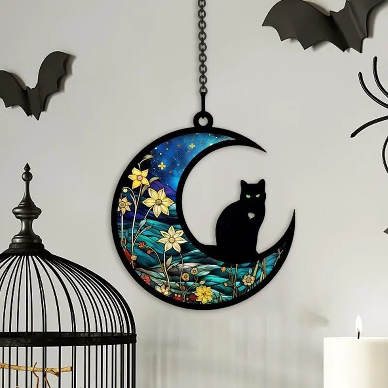 越境新作窓吊り月黒猫ペンダント記念日飾り月犬ハロウィン飾りストラップ