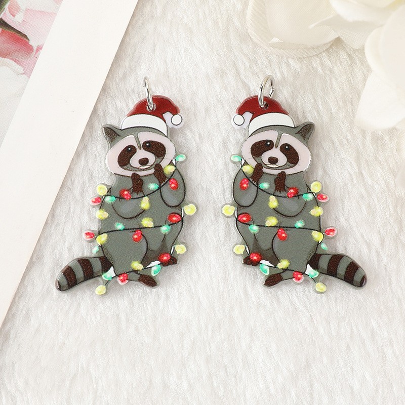 クロスボーダー両面アクリルクリスマス牛クリスマスツリー耳飾りネックレスキーホルダー