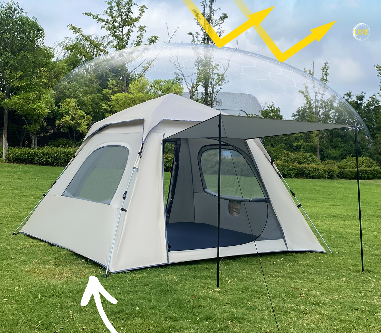 国境を越えるテント、全自動折りたたみ式キャンプ用屋外テント、日よけ、ポータブル、組み立て不要、素早く開閉、ドアと窓付き