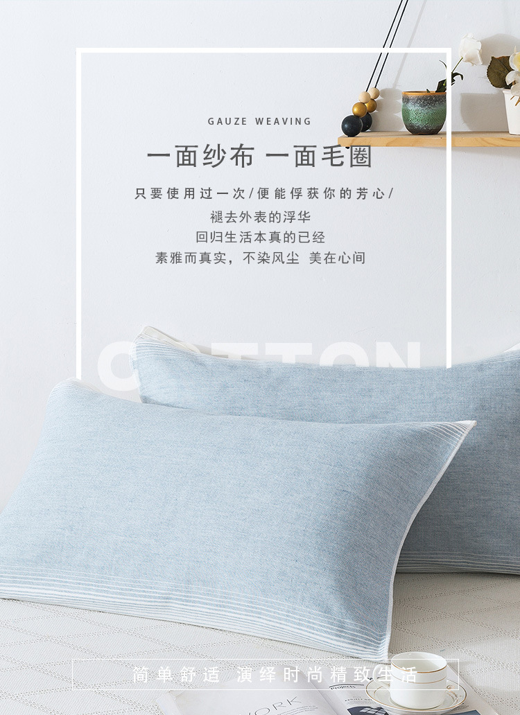 代装特価綿ガーゼ枕巾脱落防止綿家庭用バンド三層枕巾一条