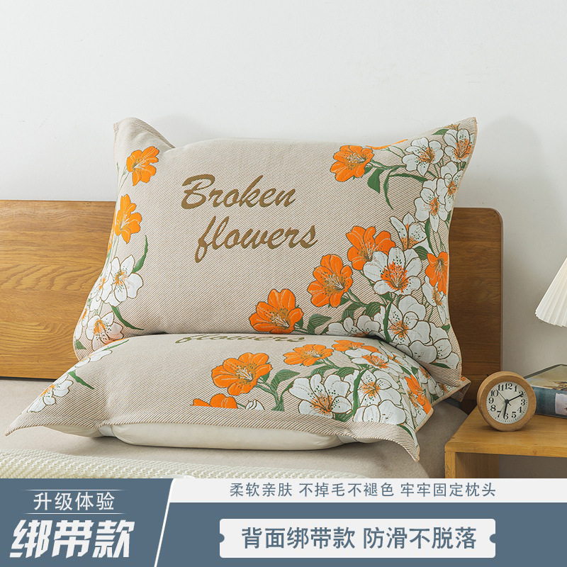 枕カバー 純綿ガーゼ 1本の紐付き 滑り止め 脱落しない シングル 大人用 綿100% 吸汗性 厚手枕カバー