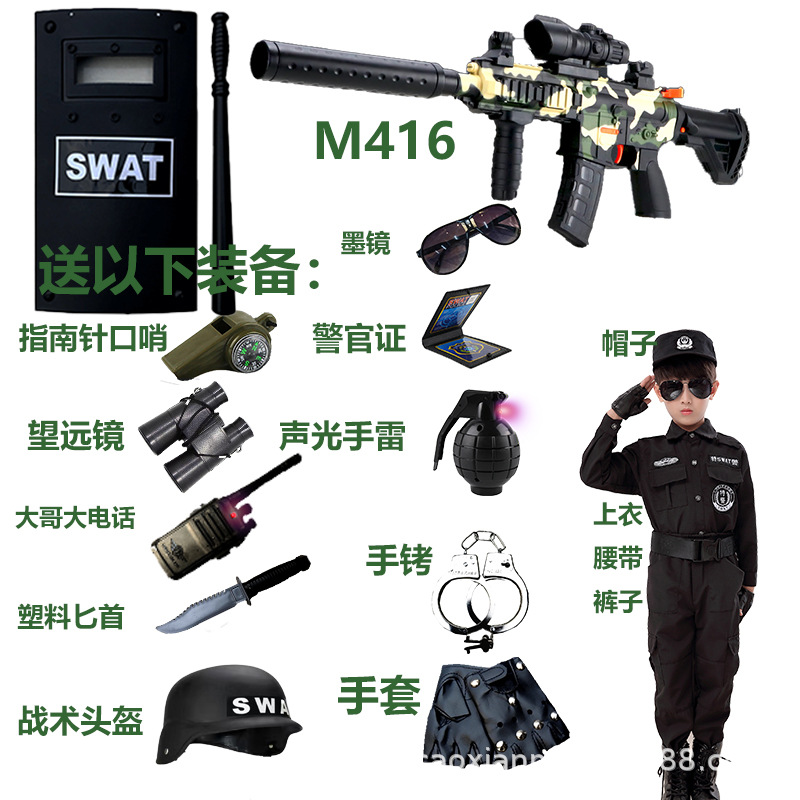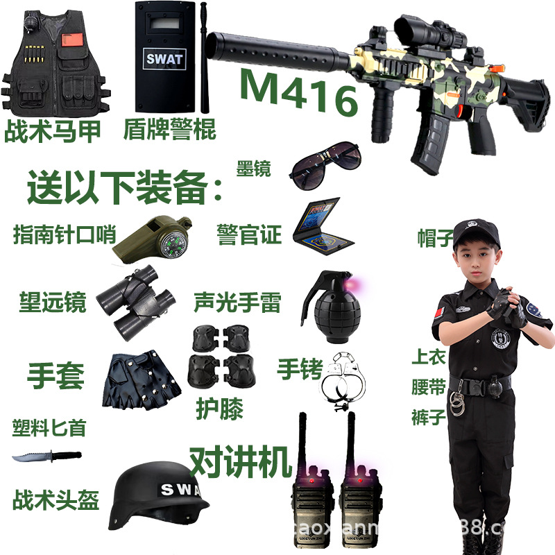 子供のおもちゃの銃m416ソフト弾の銃の小さい特の警服の馬甲のフルセットのおもちゃの装備の男の子はニワトリの盾のヘルメットを食べます。