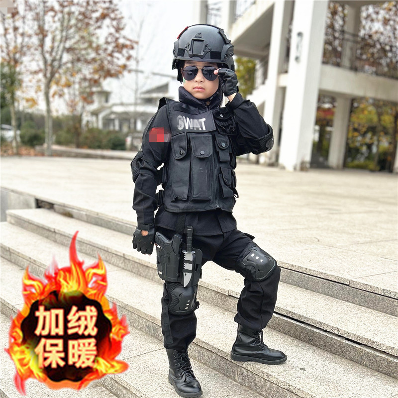 児童警察のベルベット特警服特殊兵セット玩具装備服男子児童演技警官服が厚くなった