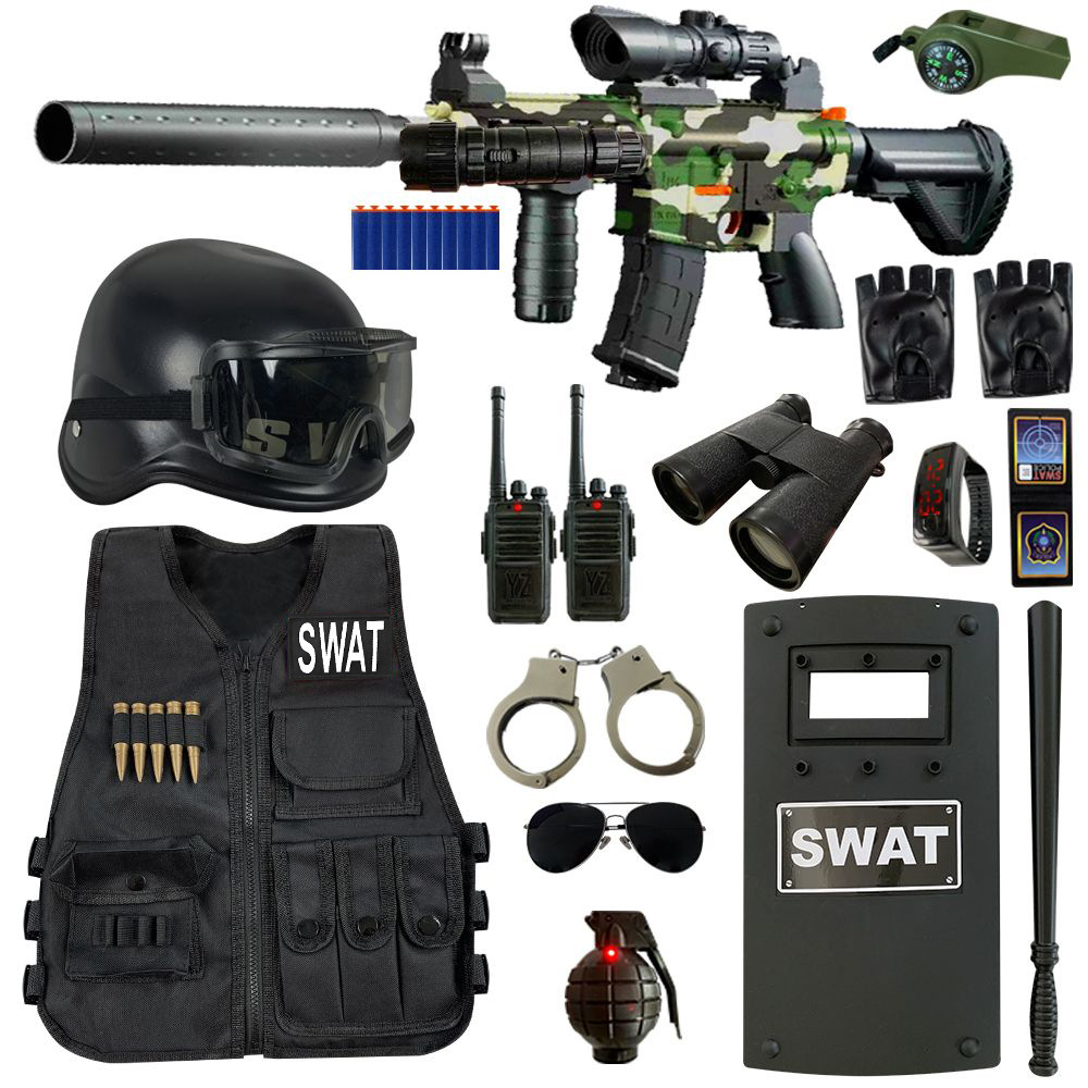 QH小特警吃鸡套装小警察男儿童装备冲锋枪玩具小孩特种兵军装cos