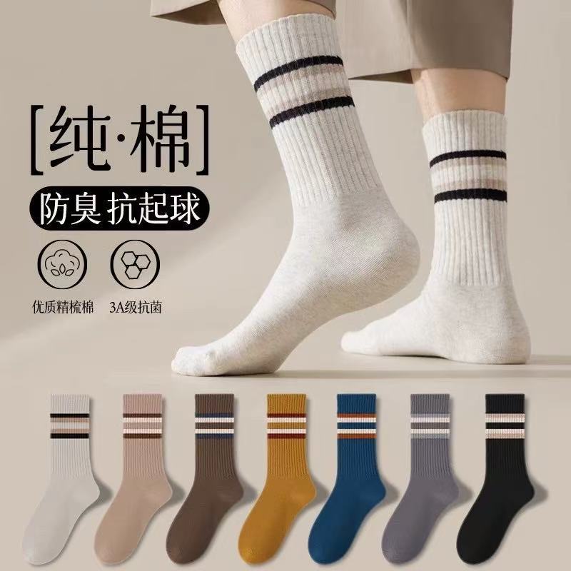 秋冬条纹复古运动袜子女中筒袜防臭吸汗抗菌冬季男士长袜高帮
