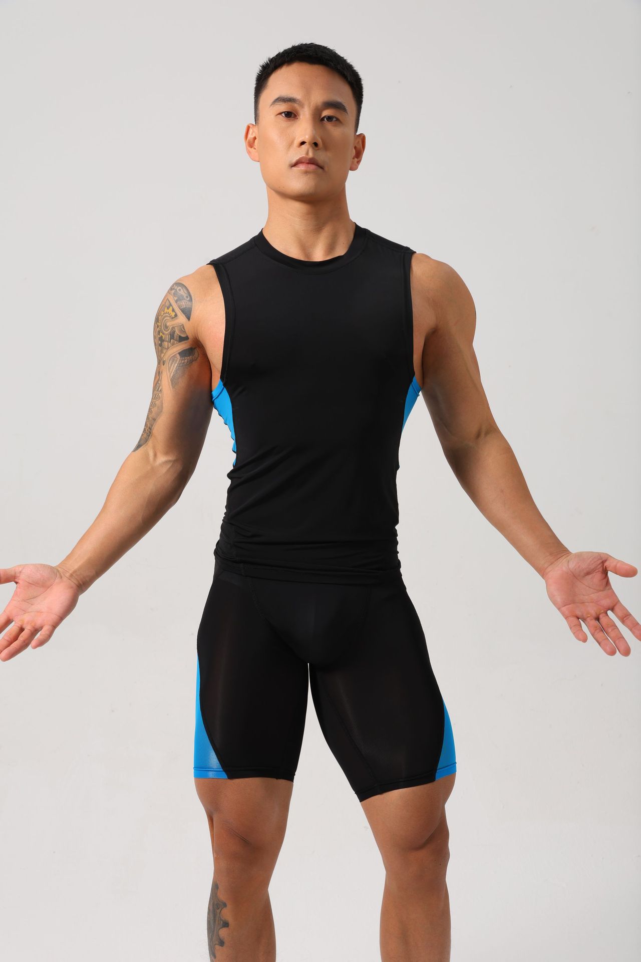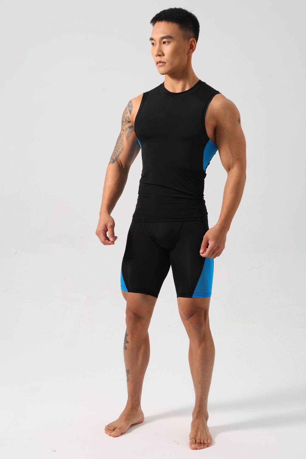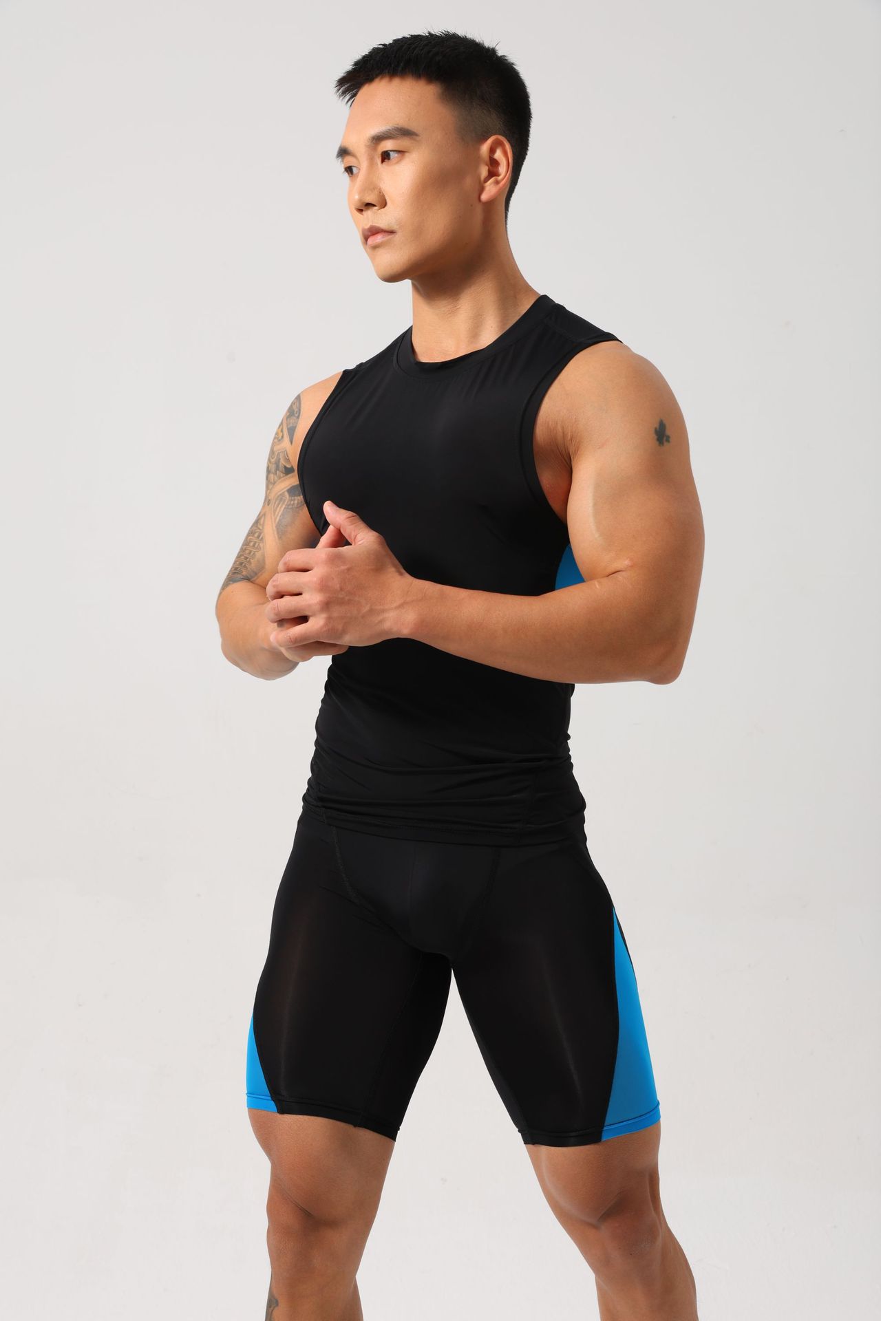ランニング速乾弾力タイトなスポーツベスト男性夏ノースリーブキャンプフィットネストトレーニング服